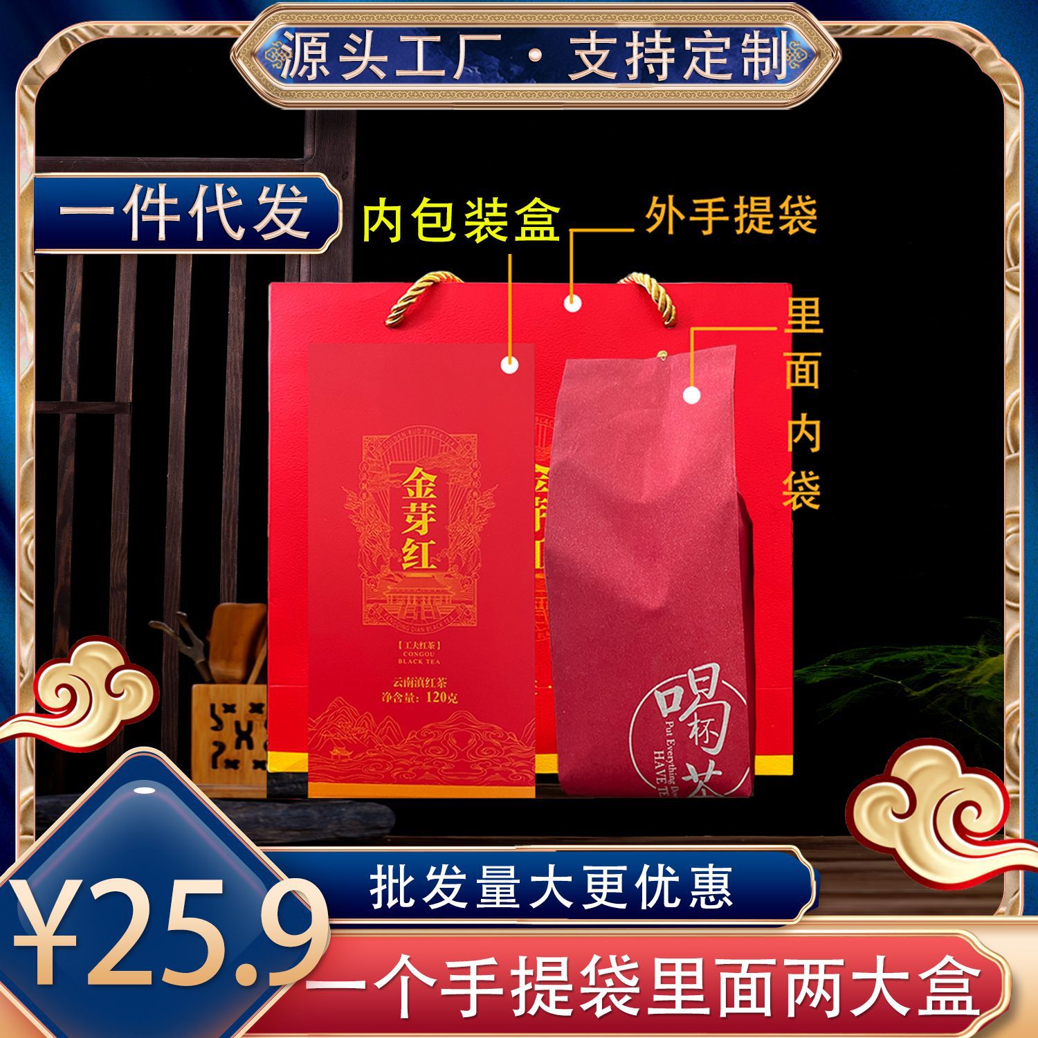 2023年云南凤庆滇红 到手一个手提袋 两大盒滇红茶 送礼必备