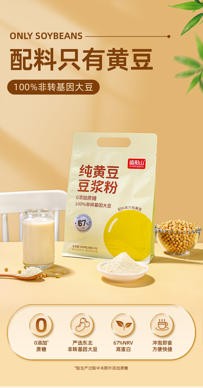黄豆豆浆粉 纯豆浆粉300独立包装速溶无蔗糖高蛋白原味豆浆粉批发