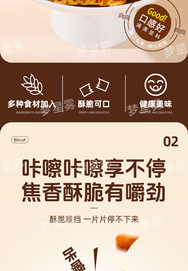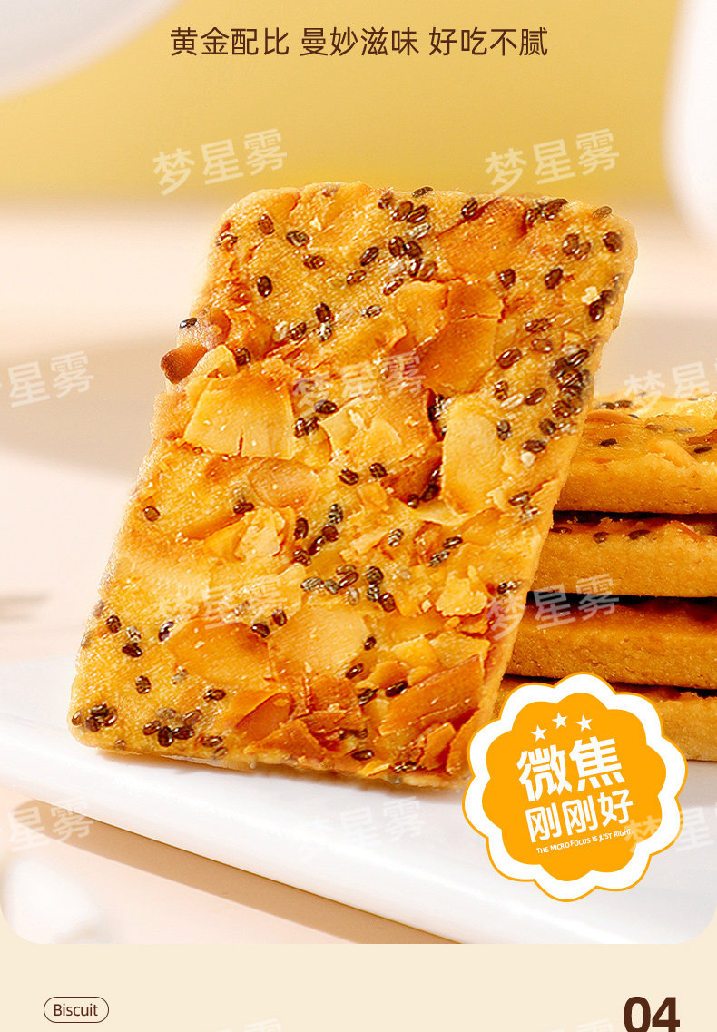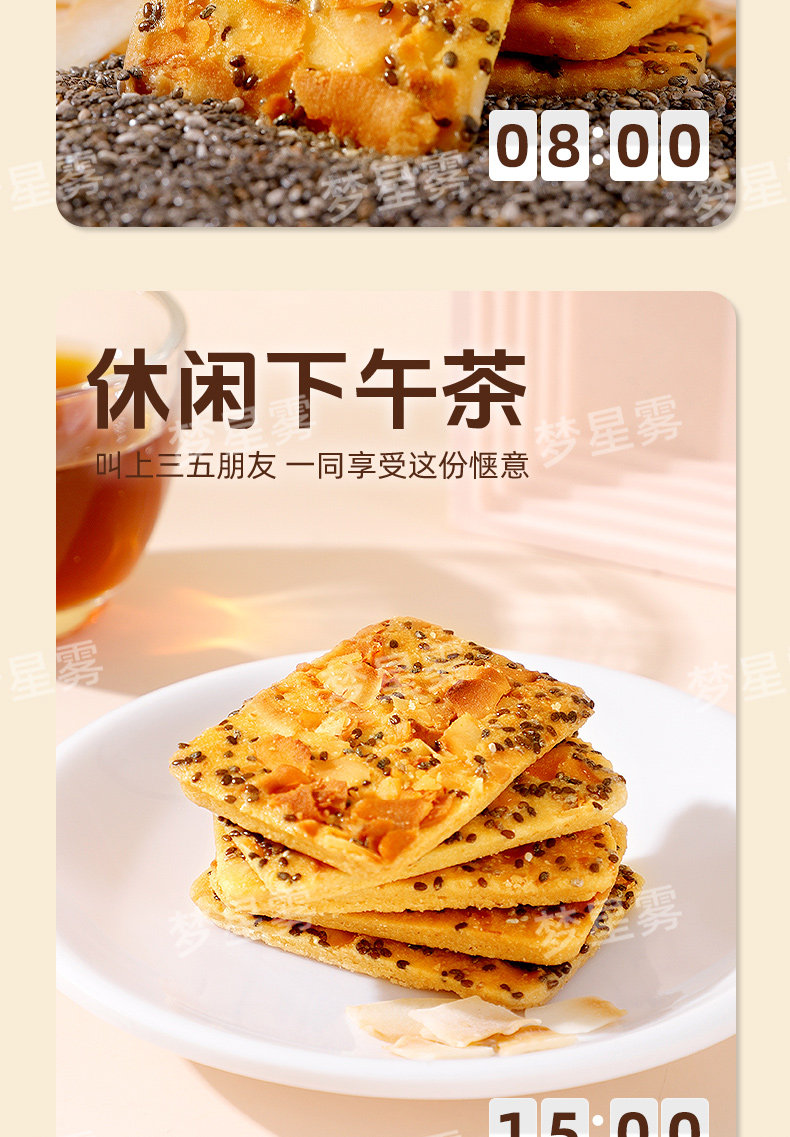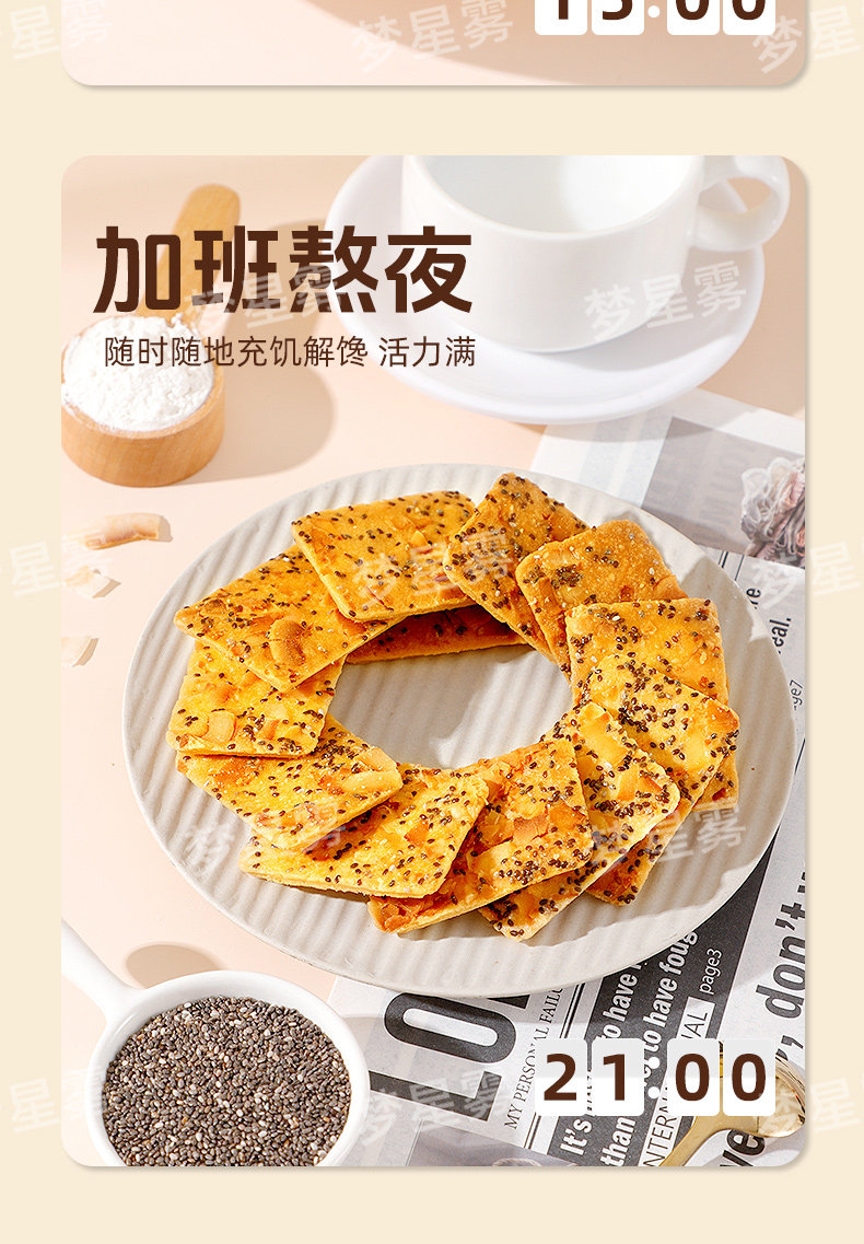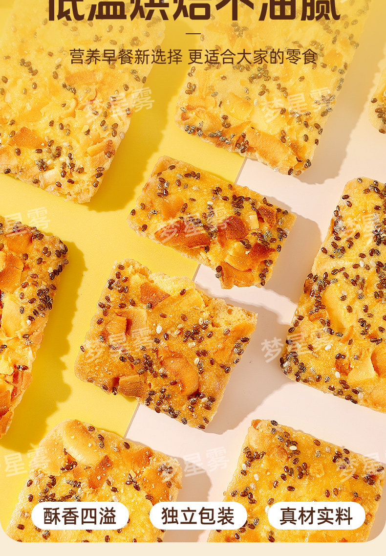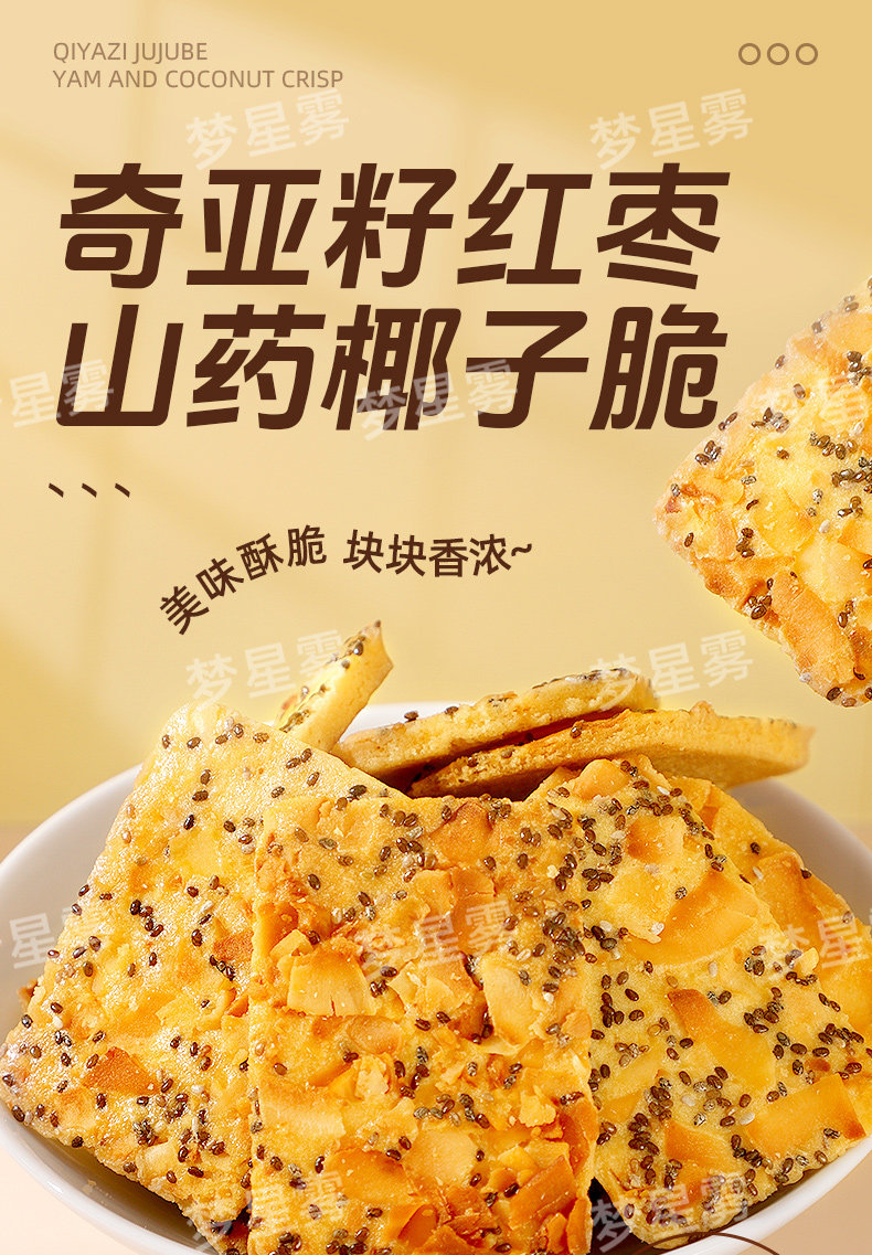 !奇亚籽椰椰脆片薄脆饼干非油炸高膳食代餐休闲小零红枣高纤夹心