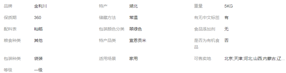本网页所展示的有关【金利川活水灌溉籼稻高山生态米2.5KG袋装 现货_大米_恩施州丰时生态农业发展有限公司 】的信息/图片/参数等由赛皇云的会员【恩施州丰时生态农业发展有限公司 】提供,由赛皇云会员【恩施州丰时生态农业发展有限公司 】自行对信息/图片/参数等的真实性、准确性和合法性负责,本平台(本网站)仅提供展示服务,请谨慎交易,因交易而产生的法律关系及法律纠纷由您自行协商解决,本平台(本网站)对此不承担任何责任。您在本网页可以浏览【金利川活水灌溉籼稻高山生态米2.5KG袋装 现货_大米_恩施州丰时生态农业发展有限公司 】有关的信息/图片/价格等及提供【金利川活水灌溉籼稻高山生态米2.5KG袋装 现货_大米_恩施州丰时生态农业发展有限公司 】的商家公司简介、联系方式等信息。