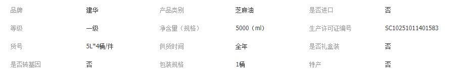 本网页所展示的有关【建华芝麻调和油5L 芝麻油 小磨香油 麻油 建华香油 供应_芝麻油_成都联众优购商贸有限公司】的信息/图片/参数等由赛皇云的会员【成都联众优购商贸有限公司】提供,由赛皇云会员【成都联众优购商贸有限公司】自行对信息/图片/参数等的真实性、准确性和合法性负责,本平台(本网站)仅提供展示服务,请谨慎交易,因交易而产生的法律关系及法律纠纷由您自行协商解决,本平台(本网站)对此不承担任何责任。您在本网页可以浏览【建华芝麻调和油5L 芝麻油 小磨香油 麻油 建华香油 供应_芝麻油_成都联众优购商贸有限公司】有关的信息/图片/价格等及提供【建华芝麻调和油5L 芝麻油 小磨香油 麻油 建华香油 供应_芝麻油_成都联众优购商贸有限公司】的商家公司简介、联系方式等信息。