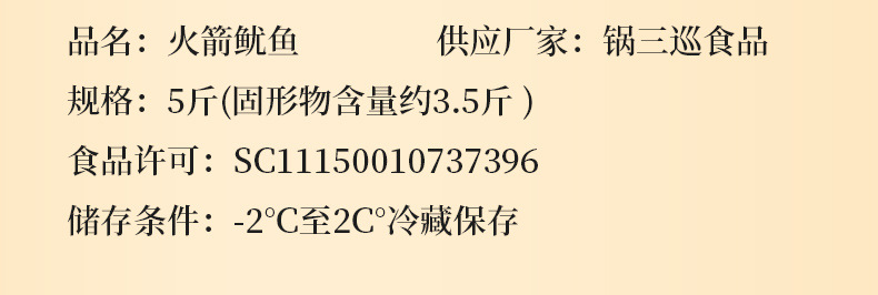 本网页所展示的有关【冷冻新鲜牛角花火箭鱿鱼现货批发火箭鱿鱼商用铁板烧烤火锅食材_水产_重庆锅三巡食品有限公司】的信息/图片/参数等由赛皇云的会员【重庆锅三巡食品有限公司】提供,由赛皇云会员【重庆锅三巡食品有限公司】自行对信息/图片/参数等的真实性、准确性和合法性负责,本平台(本网站)仅提供展示服务,请谨慎交易,因交易而产生的法律关系及法律纠纷由您自行协商解决,本平台(本网站)对此不承担任何责任。您在本网页可以浏览【冷冻新鲜牛角花火箭鱿鱼现货批发火箭鱿鱼商用铁板烧烤火锅食材_水产_重庆锅三巡食品有限公司】有关的信息/图片/价格等及提供【冷冻新鲜牛角花火箭鱿鱼现货批发火箭鱿鱼商用铁板烧烤火锅食材_水产_重庆锅三巡食品有限公司】的商家公司简介、联系方式等信息。
