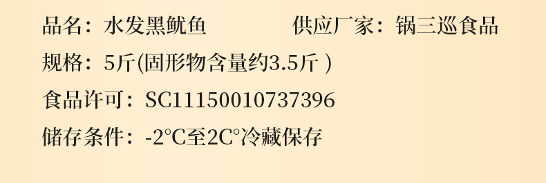 本网页所展示的有关【火锅食材配菜水发黑鱿鱼新鲜冷冻海鲜烧烤大鱿鱼铁板商用海鲜水产_水产_重庆锅三巡食品有限公司】的信息/图片/参数等由赛皇云的会员【重庆锅三巡食品有限公司】提供,由赛皇云会员【重庆锅三巡食品有限公司】自行对信息/图片/参数等的真实性、准确性和合法性负责,本平台(本网站)仅提供展示服务,请谨慎交易,因交易而产生的法律关系及法律纠纷由您自行协商解决,本平台(本网站)对此不承担任何责任。您在本网页可以浏览【火锅食材配菜水发黑鱿鱼新鲜冷冻海鲜烧烤大鱿鱼铁板商用海鲜水产_水产_重庆锅三巡食品有限公司】有关的信息/图片/价格等及提供【火锅食材配菜水发黑鱿鱼新鲜冷冻海鲜烧烤大鱿鱼铁板商用海鲜水产_水产_重庆锅三巡食品有限公司】的商家公司简介、联系方式等信息。