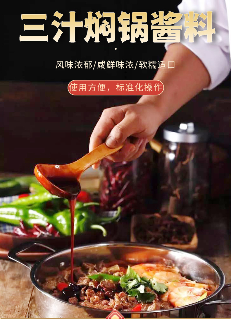 本网页所展示的有关【三汁焖锅酱料200g香辣焖锅酱汁餐饮商用配方黄焖鸡调料调味品批发_调味品_四川美味源食品有限公司】的信息/图片/参数等由赛皇云的会员【四川美味源食品有限公司】提供,由赛皇云会员【四川美味源食品有限公司】自行对信息/图片/参数等的真实性、准确性和合法性负责,本平台(本网站)仅提供展示服务,请谨慎交易,因交易而产生的法律关系及法律纠纷由您自行协商解决,本平台(本网站)对此不承担任何责任。您在本网页可以浏览【三汁焖锅酱料200g香辣焖锅酱汁餐饮商用配方黄焖鸡调料调味品批发_调味品_四川美味源食品有限公司】有关的信息/图片/价格等及提供【三汁焖锅酱料200g香辣焖锅酱汁餐饮商用配方黄焖鸡调料调味品批发_调味品_四川美味源食品有限公司】的商家公司简介、联系方式等信息。