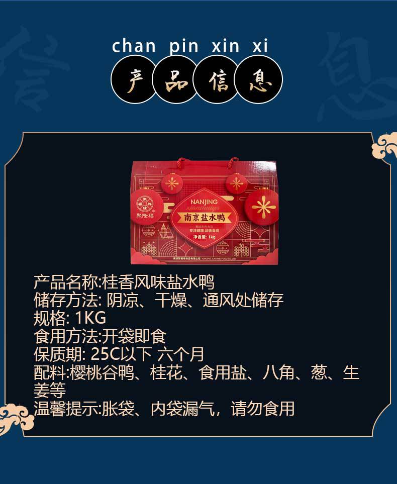 本网页所展示的有关【南京特产盐水鸭卤味零食礼盒装批发中秋节送礼福利盐水鸭大礼包_鸭_南京聚客维食品有限公司】的信息/图片/参数等由赛皇云的会员【南京聚客维食品有限公司】提供,由赛皇云会员【南京聚客维食品有限公司】自行对信息/图片/参数等的真实性、准确性和合法性负责,本平台(本网站)仅提供展示服务,请谨慎交易,因交易而产生的法律关系及法律纠纷由您自行协商解决,本平台(本网站)对此不承担任何责任。您在本网页可以浏览【南京特产盐水鸭卤味零食礼盒装批发中秋节送礼福利盐水鸭大礼包_鸭_南京聚客维食品有限公司】有关的信息/图片/价格等及提供【南京特产盐水鸭卤味零食礼盒装批发中秋节送礼福利盐水鸭大礼包_鸭_南京聚客维食品有限公司】的商家公司简介、联系方式等信息。
