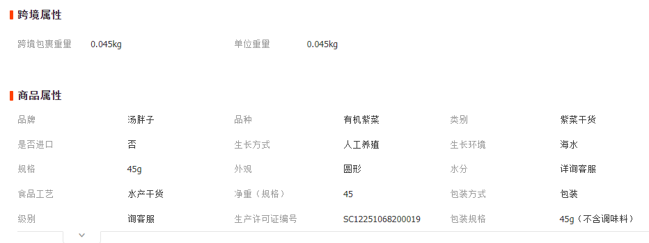 小贴士:紫菜净含量45克