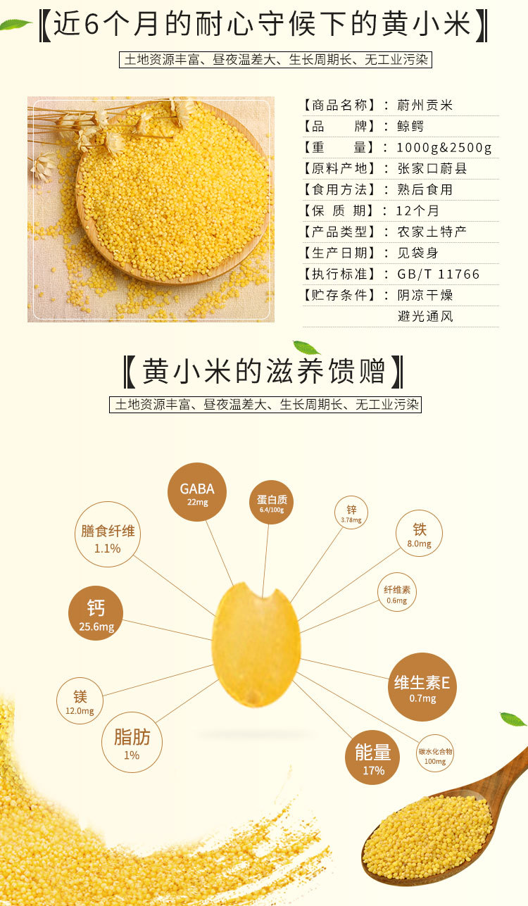 本网页所展示的有关【【原产地直发】蔚县小米黄小米新米小米食用农家五谷杂粮糯食2斤_小米_河北木兮泉农业科技有限责任公司】的信息/图片/参数等由赛皇云的会员【河北木兮泉农业科技有限责任公司】提供,由赛皇云会员【河北木兮泉农业科技有限责任公司】自行对信息/图片/参数等的真实性、准确性和合法性负责,本平台(本网站)仅提供展示服务,请谨慎交易,因交易而产生的法律关系及法律纠纷由您自行协商解决,本平台(本网站)对此不承担任何责任。您在本网页可以浏览【【原产地直发】蔚县小米黄小米新米小米食用农家五谷杂粮糯食2斤_小米_河北木兮泉农业科技有限责任公司】有关的信息/图片/价格等及提供【【原产地直发】蔚县小米黄小米新米小米食用农家五谷杂粮糯食2斤_小米_河北木兮泉农业科技有限责任公司】的商家公司简介、联系方式等信息。