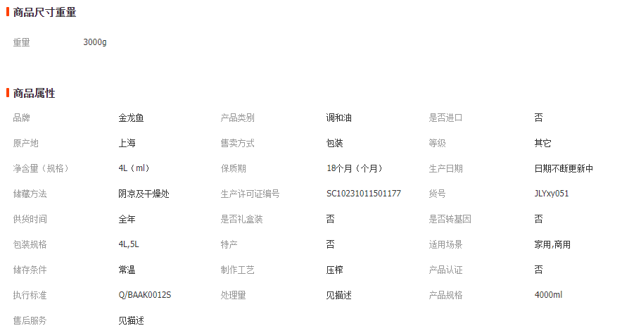 本网页所展示的有关【金龙鱼黄金比例调和油4L/5L食用植物油1:1:1桶装家用油 炒菜烹饪_其他食用油_上海祥宇贸易有限公司】的信息/图片/参数等由赛皇云的会员【上海祥宇贸易有限公司】提供,由赛皇云会员【上海祥宇贸易有限公司】自行对信息/图片/参数等的真实性、准确性和合法性负责,本平台(本网站)仅提供展示服务,请谨慎交易,因交易而产生的法律关系及法律纠纷由您自行协商解决,本平台(本网站)对此不承担任何责任。您在本网页可以浏览【金龙鱼黄金比例调和油4L/5L食用植物油1:1:1桶装家用油 炒菜烹饪_其他食用油_上海祥宇贸易有限公司】有关的信息/图片/价格等及提供【金龙鱼黄金比例调和油4L/5L食用植物油1:1:1桶装家用油 炒菜烹饪_其他食用油_上海祥宇贸易有限公司】的商家公司简介、联系方式等信息。