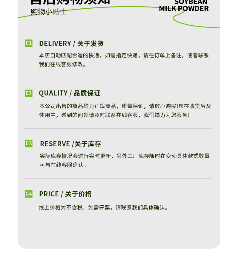 本网页所展示的有关【专用速溶早餐龙王豆浆粉25KG无糖无渣代餐商用饮料豆奶批发食品_冲调食品_广东日可威食品原料有限公司】的信息/图片/参数等由赛皇云的会员【广东日可威食品原料有限公司】提供,由赛皇云会员【广东日可威食品原料有限公司】自行对信息/图片/参数等的真实性、准确性和合法性负责,本平台(本网站)仅提供展示服务,请谨慎交易,因交易而产生的法律关系及法律纠纷由您自行协商解决,本平台(本网站)对此不承担任何责任。您在本网页可以浏览【专用速溶早餐龙王豆浆粉25KG无糖无渣代餐商用饮料豆奶批发食品_冲调食品_广东日可威食品原料有限公司】有关的信息/图片/价格等及提供【专用速溶早餐龙王豆浆粉25KG无糖无渣代餐商用饮料豆奶批发食品_冲调食品_广东日可威食品原料有限公司】的商家公司简介、联系方式等信息。
