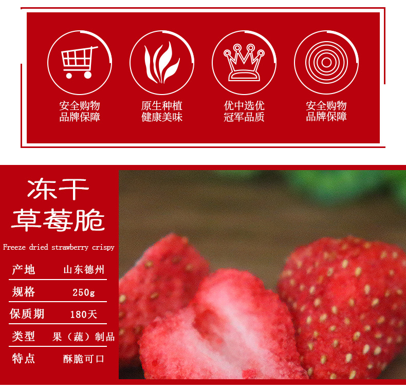 本网页所展示的有关【禾势冻干草莓脆_速冻果品_德州禾势兄弟食品有限公司】的信息/图片/参数等由赛皇云的会员【德州禾势兄弟食品有限公司】提供,由赛皇云会员【德州禾势兄弟食品有限公司】自行对信息/图片/参数等的真实性、准确性和合法性负责,本平台(本网站)仅提供展示服务,请谨慎交易,因交易而产生的法律关系及法律纠纷由您自行协商解决,本平台(本网站)对此不承担任何责任。您在本网页可以浏览【禾势冻干草莓脆_速冻果品_德州禾势兄弟食品有限公司】有关的信息/图片/价格等及提供【禾势冻干草莓脆_速冻果品_德州禾势兄弟食品有限公司】的商家公司简介、联系方式等信息。