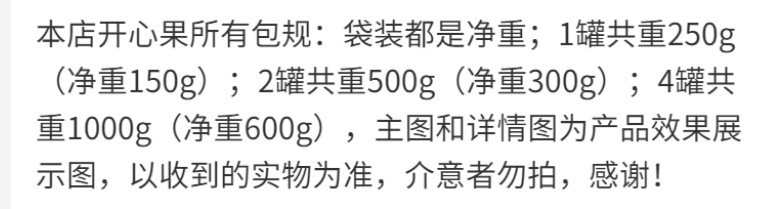 本网页所展示的有关【开心果大量批发整箱新货盐焗味大颗粒含罐果仁干果坚果零食50g厂_其他干果_东莞市厚街运花童食品经营部】的信息/图片/参数等由赛皇云的会员【东莞市厚街运花童食品经营部】提供,由赛皇云会员【东莞市厚街运花童食品经营部】自行对信息/图片/参数等的真实性、准确性和合法性负责,本平台(本网站)仅提供展示服务,请谨慎交易,因交易而产生的法律关系及法律纠纷由您自行协商解决,本平台(本网站)对此不承担任何责任。您在本网页可以浏览【开心果大量批发整箱新货盐焗味大颗粒含罐果仁干果坚果零食50g厂_其他干果_东莞市厚街运花童食品经营部】有关的信息/图片/价格等及提供【开心果大量批发整箱新货盐焗味大颗粒含罐果仁干果坚果零食50g厂_其他干果_东莞市厚街运花童食品经营部】的商家公司简介、联系方式等信息。