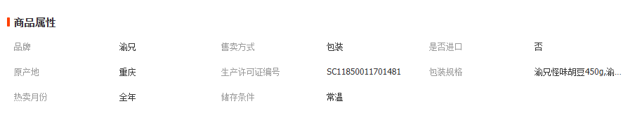 本网页所展示的有关【重庆特产渝兄怪味胡豆450g袋麻辣小吃 休闲零食怪味胡豆_休闲食品_重庆千深食品有限公司】的信息/图片/参数等由赛皇云的会员【重庆千深食品有限公司】提供,由赛皇云会员【重庆千深食品有限公司】自行对信息/图片/参数等的真实性、准确性和合法性负责,本平台(本网站)仅提供展示服务,请谨慎交易,因交易而产生的法律关系及法律纠纷由您自行协商解决,本平台(本网站)对此不承担任何责任。您在本网页可以浏览【重庆特产渝兄怪味胡豆450g袋麻辣小吃 休闲零食怪味胡豆_休闲食品_重庆千深食品有限公司】有关的信息/图片/价格等及提供【重庆特产渝兄怪味胡豆450g袋麻辣小吃 休闲零食怪味胡豆_休闲食品_重庆千深食品有限公司】的商家公司简介、联系方式等信息。