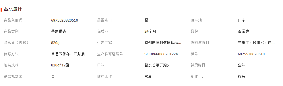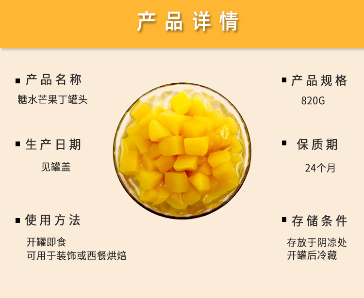 本网页所展示的有关【百棠香糖水芒果丁罐头820g*12罐烘焙专用蛋糕披萨装饰整箱商用_罐藏果品_山东宏熙食品有限公司】的信息/图片/参数等由赛皇云的会员【山东宏熙食品有限公司】提供,由赛皇云会员【山东宏熙食品有限公司】自行对信息/图片/参数等的真实性、准确性和合法性负责,本平台(本网站)仅提供展示服务,请谨慎交易,因交易而产生的法律关系及法律纠纷由您自行协商解决,本平台(本网站)对此不承担任何责任。您在本网页可以浏览【百棠香糖水芒果丁罐头820g*12罐烘焙专用蛋糕披萨装饰整箱商用_罐藏果品_山东宏熙食品有限公司】有关的信息/图片/价格等及提供【百棠香糖水芒果丁罐头820g*12罐烘焙专用蛋糕披萨装饰整箱商用_罐藏果品_山东宏熙食品有限公司】的商家公司简介、联系方式等信息。