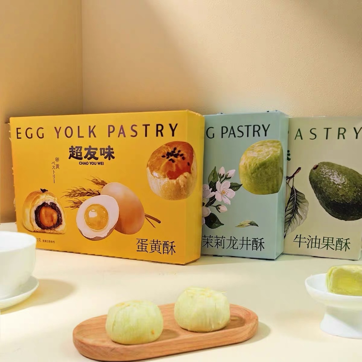 【品名】蛋黄酥,黑凤酥,茉莉龙井酥,牛油果酥