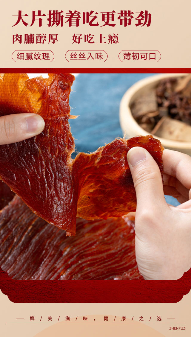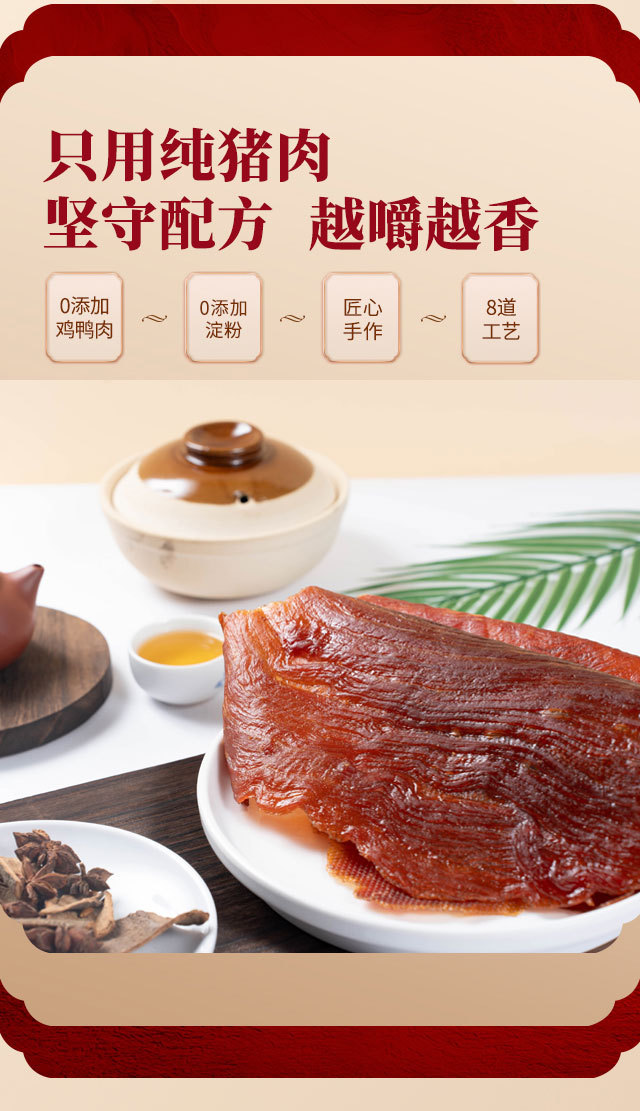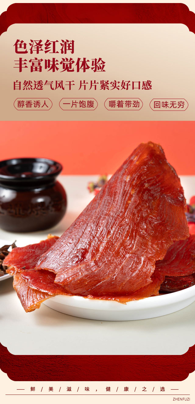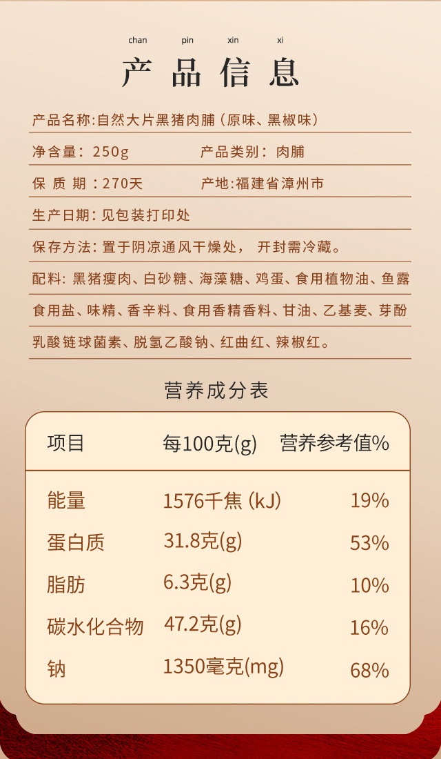 本网页所展示的有关【臻夫子250克大片黑猪肉脯_休闲食品_漳州市臻夫子食品有限公司】的信息/图片/参数等由赛皇云的会员【漳州市臻夫子食品有限公司】提供,由赛皇云会员【漳州市臻夫子食品有限公司】自行对信息/图片/参数等的真实性、准确性和合法性负责,本平台(本网站)仅提供展示服务,请谨慎交易,因交易而产生的法律关系及法律纠纷由您自行协商解决,本平台(本网站)对此不承担任何责任。您在本网页可以浏览【臻夫子250克大片黑猪肉脯_休闲食品_漳州市臻夫子食品有限公司】有关的信息/图片/价格等及提供【臻夫子250克大片黑猪肉脯_休闲食品_漳州市臻夫子食品有限公司】的商家公司简介、联系方式等信息。