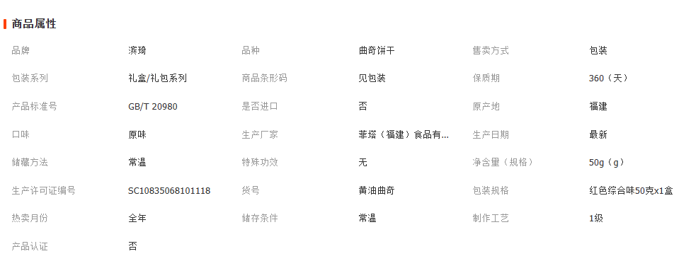 【品名】:滨琦曲奇饼干综合味50克/盒装