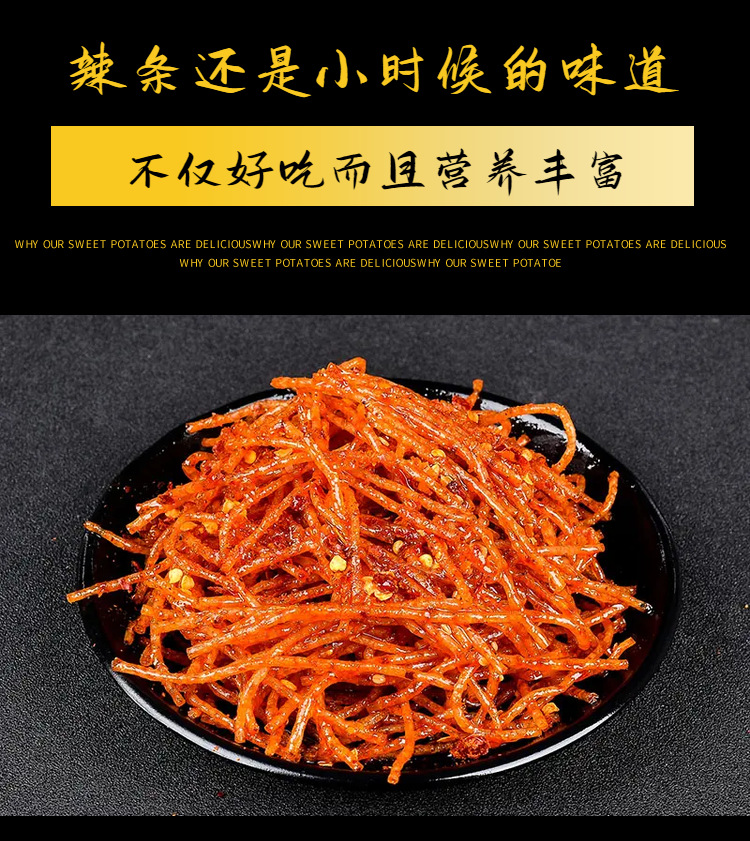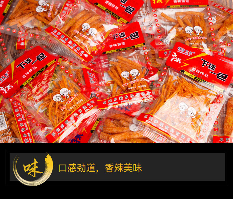 本网页所展示的有关【网红辣条香辣味辣丝老式8090后儿时怀旧袋装休闲小吃解馋面筋零食_休闲食品_阜阳市多爱食品有限公司】的信息/图片/参数等由赛皇云的会员【阜阳市多爱食品有限公司】提供,由赛皇云会员【阜阳市多爱食品有限公司】自行对信息/图片/参数等的真实性、准确性和合法性负责,本平台(本网站)仅提供展示服务,请谨慎交易,因交易而产生的法律关系及法律纠纷由您自行协商解决,本平台(本网站)对此不承担任何责任。您在本网页可以浏览【网红辣条香辣味辣丝老式8090后儿时怀旧袋装休闲小吃解馋面筋零食_休闲食品_阜阳市多爱食品有限公司】有关的信息/图片/价格等及提供【网红辣条香辣味辣丝老式8090后儿时怀旧袋装休闲小吃解馋面筋零食_休闲食品_阜阳市多爱食品有限公司】的商家公司简介、联系方式等信息。