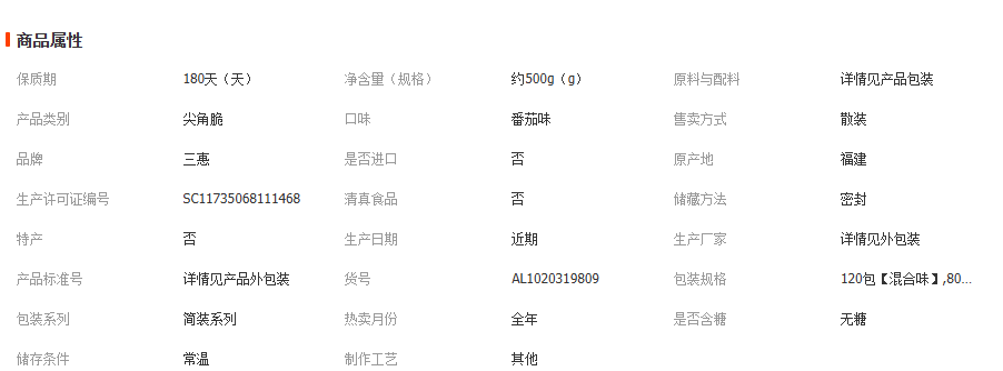 本网页所展示的有关【三惠尖角脆妙脆角锅巴三角脆休闲零食小吃商用怀旧食品牛角小包装_休闲食品_漳州市新能发食品有限公司】的信息/图片/参数等由赛皇云的会员【漳州市新能发食品有限公司】提供,由赛皇云会员【漳州市新能发食品有限公司】自行对信息/图片/参数等的真实性、准确性和合法性负责,本平台(本网站)仅提供展示服务,请谨慎交易,因交易而产生的法律关系及法律纠纷由您自行协商解决,本平台(本网站)对此不承担任何责任。您在本网页可以浏览【三惠尖角脆妙脆角锅巴三角脆休闲零食小吃商用怀旧食品牛角小包装_休闲食品_漳州市新能发食品有限公司】有关的信息/图片/价格等及提供【三惠尖角脆妙脆角锅巴三角脆休闲零食小吃商用怀旧食品牛角小包装_休闲食品_漳州市新能发食品有限公司】的商家公司简介、联系方式等信息。