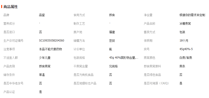 本网页所展示的有关【即食燕窝现货批发溯源码鲜炖燕窝源头厂家燕窝粥滋补品燕条原料_营养保健食品_福建品鉴食品股份公司】的信息/图片/参数等由赛皇云的会员【福建品鉴食品股份公司】提供,由赛皇云会员【福建品鉴食品股份公司】自行对信息/图片/参数等的真实性、准确性和合法性负责,本平台(本网站)仅提供展示服务,请谨慎交易,因交易而产生的法律关系及法律纠纷由您自行协商解决,本平台(本网站)对此不承担任何责任。您在本网页可以浏览【即食燕窝现货批发溯源码鲜炖燕窝源头厂家燕窝粥滋补品燕条原料_营养保健食品_福建品鉴食品股份公司】有关的信息/图片/价格等及提供【即食燕窝现货批发溯源码鲜炖燕窝源头厂家燕窝粥滋补品燕条原料_营养保健食品_福建品鉴食品股份公司】的商家公司简介、联系方式等信息。