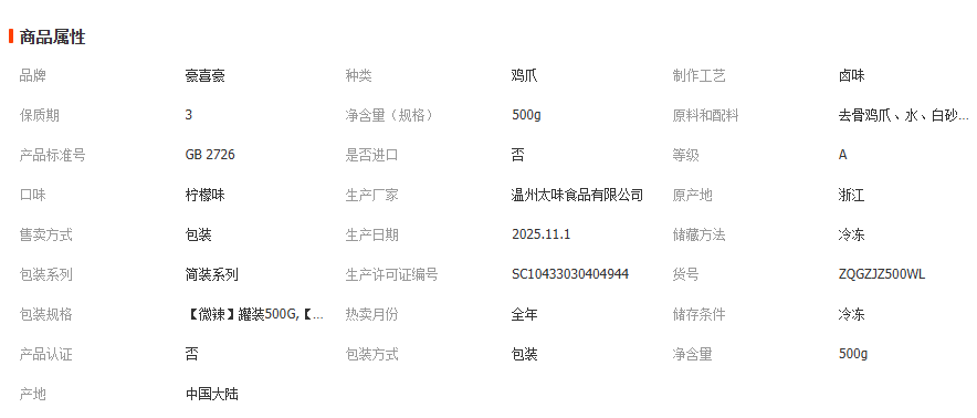 本网页所展示的有关【豪喜豪柠檬酸辣无骨鸡爪500g去骨凤爪2斤网红解馋零食小吃代发_休闲食品_温州太味食品有限公司】的信息/图片/参数等由赛皇云的会员【温州太味食品有限公司】提供,由赛皇云会员【温州太味食品有限公司】自行对信息/图片/参数等的真实性、准确性和合法性负责,本平台(本网站)仅提供展示服务,请谨慎交易,因交易而产生的法律关系及法律纠纷由您自行协商解决,本平台(本网站)对此不承担任何责任。您在本网页可以浏览【豪喜豪柠檬酸辣无骨鸡爪500g去骨凤爪2斤网红解馋零食小吃代发_休闲食品_温州太味食品有限公司】有关的信息/图片/价格等及提供【豪喜豪柠檬酸辣无骨鸡爪500g去骨凤爪2斤网红解馋零食小吃代发_休闲食品_温州太味食品有限公司】的商家公司简介、联系方式等信息。