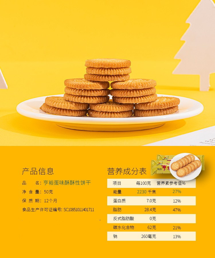 本网页所展示的有关【亨裕蛋味酥袋酥性小饼干小包装早餐饼干休闲宿舍小零食小吃50g装_休闲食品_成都市亨裕食品有限公司】的信息/图片/参数等由赛皇云的会员【成都市亨裕食品有限公司】提供,由赛皇云会员【成都市亨裕食品有限公司】自行对信息/图片/参数等的真实性、准确性和合法性负责,本平台(本网站)仅提供展示服务,请谨慎交易,因交易而产生的法律关系及法律纠纷由您自行协商解决,本平台(本网站)对此不承担任何责任。您在本网页可以浏览【亨裕蛋味酥袋酥性小饼干小包装早餐饼干休闲宿舍小零食小吃50g装_休闲食品_成都市亨裕食品有限公司】有关的信息/图片/价格等及提供【亨裕蛋味酥袋酥性小饼干小包装早餐饼干休闲宿舍小零食小吃50g装_休闲食品_成都市亨裕食品有限公司】的商家公司简介、联系方式等信息。