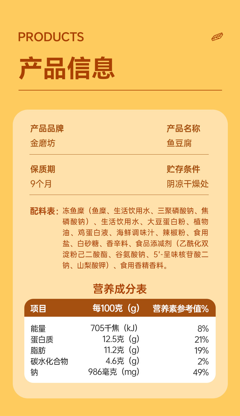 本网页所展示的有关【金磨坊 鱼豆腐盒装 小吃休闲食品豆腐干小包装豆干即食20g*20包_休闲食品_金磨坊食品股份有限公司】的信息/图片/参数等由赛皇云的会员【金磨坊食品股份有限公司】提供,由赛皇云会员【金磨坊食品股份有限公司】自行对信息/图片/参数等的真实性、准确性和合法性负责,本平台(本网站)仅提供展示服务,请谨慎交易,因交易而产生的法律关系及法律纠纷由您自行协商解决,本平台(本网站)对此不承担任何责任。您在本网页可以浏览【金磨坊 鱼豆腐盒装 小吃休闲食品豆腐干小包装豆干即食20g*20包_休闲食品_金磨坊食品股份有限公司】有关的信息/图片/价格等及提供【金磨坊 鱼豆腐盒装 小吃休闲食品豆腐干小包装豆干即食20g*20包_休闲食品_金磨坊食品股份有限公司】的商家公司简介、联系方式等信息。