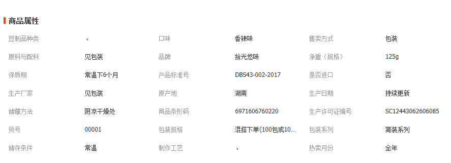 | 辣棒 | 120天 | 125克 | 芝麻香辣条 | 120天 | 112克 |