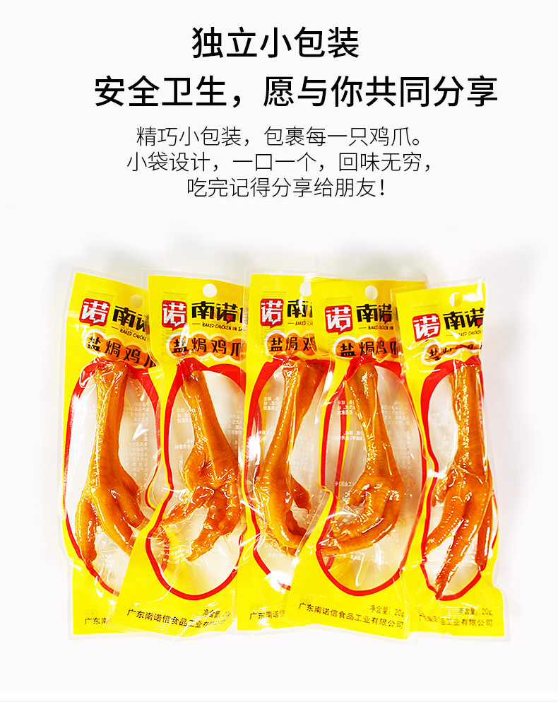 本网页所展示的有关【南诺信盐焗鸡爪肉鸡爪卤味凤爪单爪广东特产鸡脚小吃休闲零食批发_休闲食品_东莞市寮步大力果零食优品商行】的信息/图片/参数等由赛皇云的会员【东莞市寮步大力果零食优品商行】提供,由赛皇云会员【东莞市寮步大力果零食优品商行】自行对信息/图片/参数等的真实性、准确性和合法性负责,本平台(本网站)仅提供展示服务,请谨慎交易,因交易而产生的法律关系及法律纠纷由您自行协商解决,本平台(本网站)对此不承担任何责任。您在本网页可以浏览【南诺信盐焗鸡爪肉鸡爪卤味凤爪单爪广东特产鸡脚小吃休闲零食批发_休闲食品_东莞市寮步大力果零食优品商行】有关的信息/图片/价格等及提供【南诺信盐焗鸡爪肉鸡爪卤味凤爪单爪广东特产鸡脚小吃休闲零食批发_休闲食品_东莞市寮步大力果零食优品商行】的商家公司简介、联系方式等信息。