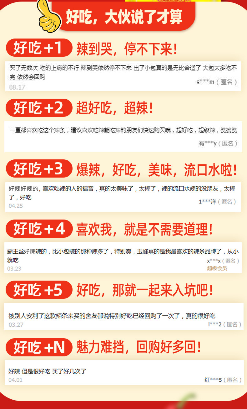 本网页所展示的有关【麻辣王子玉峰霸王丝盒装正品爆辣辣条变态辣湖南特产儿时零食批发_休闲食品_东莞市寮步大力果零食优品商行】的信息/图片/参数等由赛皇云的会员【东莞市寮步大力果零食优品商行】提供,由赛皇云会员【东莞市寮步大力果零食优品商行】自行对信息/图片/参数等的真实性、准确性和合法性负责,本平台(本网站)仅提供展示服务,请谨慎交易,因交易而产生的法律关系及法律纠纷由您自行协商解决,本平台(本网站)对此不承担任何责任。您在本网页可以浏览【麻辣王子玉峰霸王丝盒装正品爆辣辣条变态辣湖南特产儿时零食批发_休闲食品_东莞市寮步大力果零食优品商行】有关的信息/图片/价格等及提供【麻辣王子玉峰霸王丝盒装正品爆辣辣条变态辣湖南特产儿时零食批发_休闲食品_东莞市寮步大力果零食优品商行】的商家公司简介、联系方式等信息。