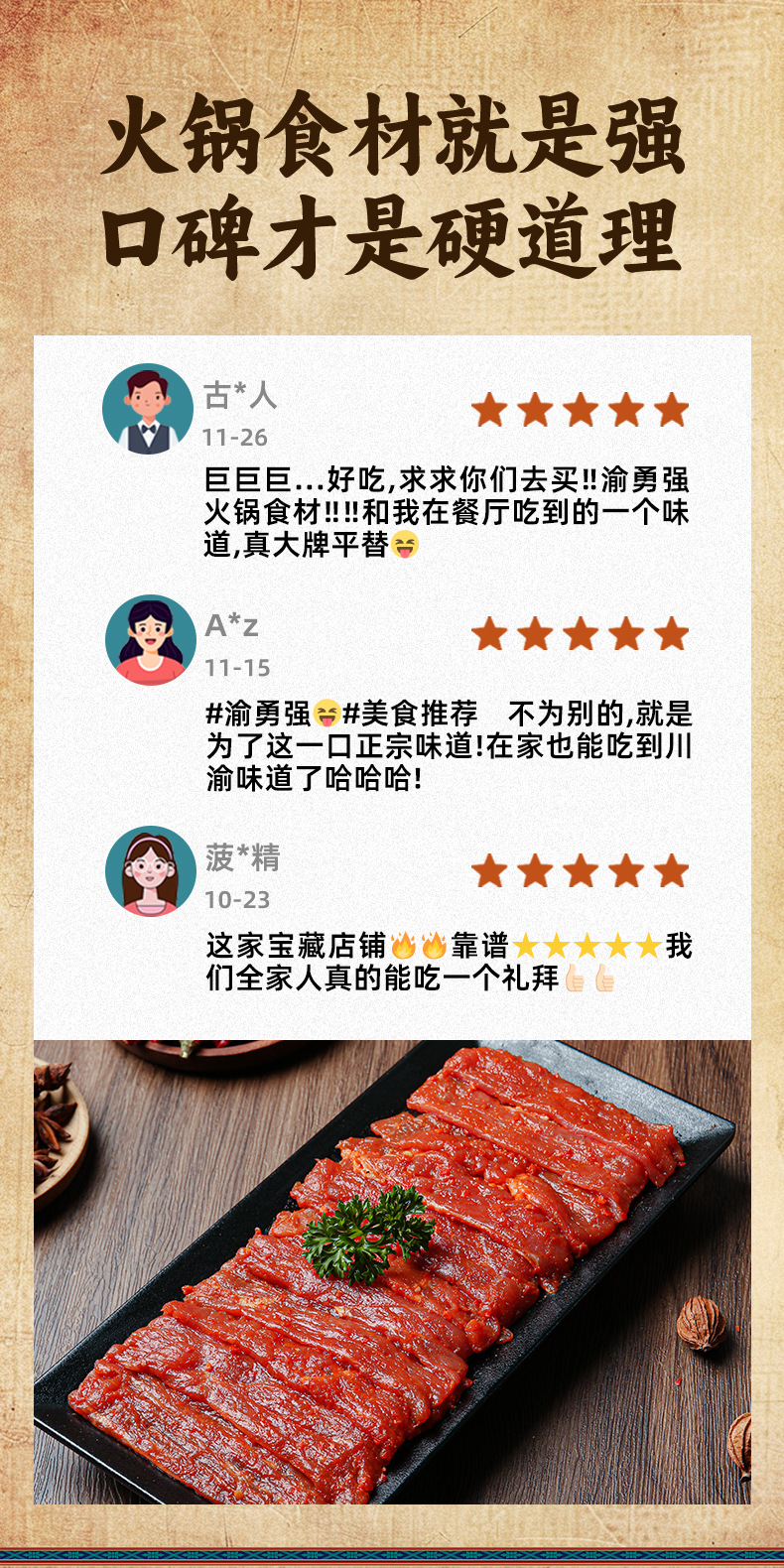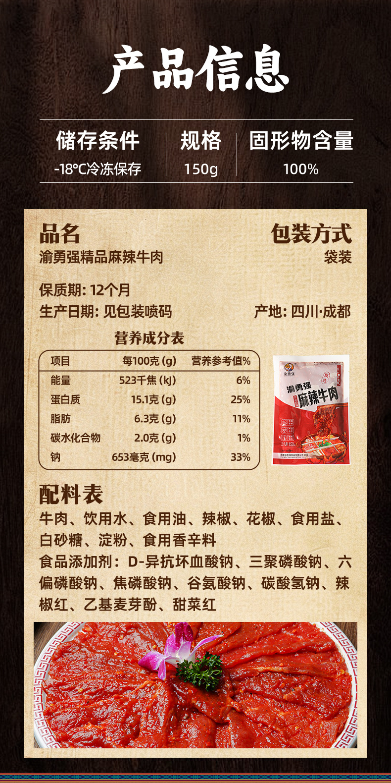 本网页所展示的有关【麻辣牛肉片火锅食材川味涮火锅150克工厂冷冻麻辣烫商用批 发包邮_牛肉及制品_成都渝勇强食品有限公司】的信息/图片/参数等由赛皇云的会员【成都渝勇强食品有限公司】提供,由赛皇云会员【成都渝勇强食品有限公司】自行对信息/图片/参数等的真实性、准确性和合法性负责,本平台(本网站)仅提供展示服务,请谨慎交易,因交易而产生的法律关系及法律纠纷由您自行协商解决,本平台(本网站)对此不承担任何责任。您在本网页可以浏览【麻辣牛肉片火锅食材川味涮火锅150克工厂冷冻麻辣烫商用批 发包邮_牛肉及制品_成都渝勇强食品有限公司】有关的信息/图片/价格等及提供【麻辣牛肉片火锅食材川味涮火锅150克工厂冷冻麻辣烫商用批 发包邮_牛肉及制品_成都渝勇强食品有限公司】的商家公司简介、联系方式等信息。