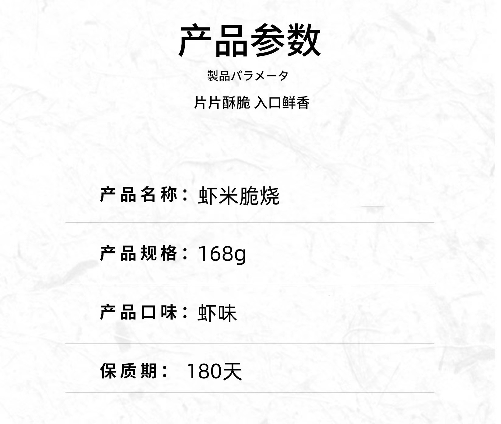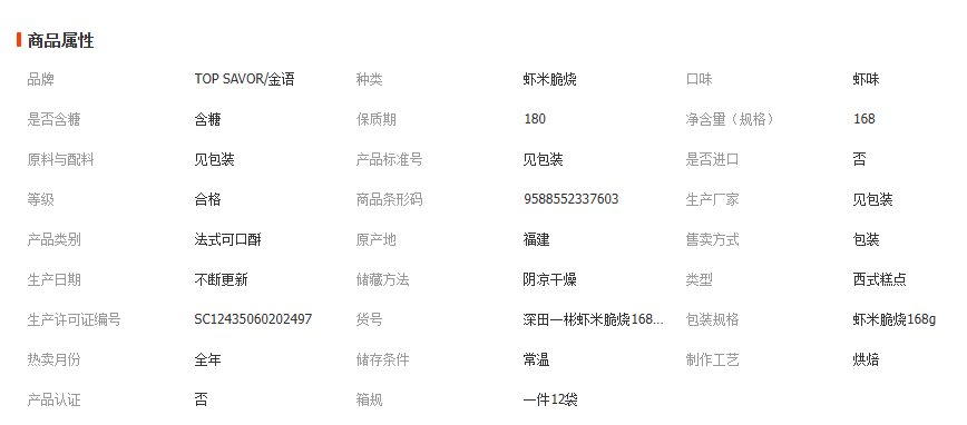本网页所展示的有关【深田一彬虾米脆烧168g袋装网红休闲零食饼干虾皮芝麻薄脆虾米饼_饼干糕点_晋江市金利兴食品有限责任公司】的信息/图片/参数等由赛皇云的会员【晋江市金利兴食品有限责任公司】提供,由赛皇云会员【晋江市金利兴食品有限责任公司】自行对信息/图片/参数等的真实性、准确性和合法性负责,本平台(本网站)仅提供展示服务,请谨慎交易,因交易而产生的法律关系及法律纠纷由您自行协商解决,本平台(本网站)对此不承担任何责任。您在本网页可以浏览【深田一彬虾米脆烧168g袋装网红休闲零食饼干虾皮芝麻薄脆虾米饼_饼干糕点_晋江市金利兴食品有限责任公司】有关的信息/图片/价格等及提供【深田一彬虾米脆烧168g袋装网红休闲零食饼干虾皮芝麻薄脆虾米饼_饼干糕点_晋江市金利兴食品有限责任公司】的商家公司简介、联系方式等信息。