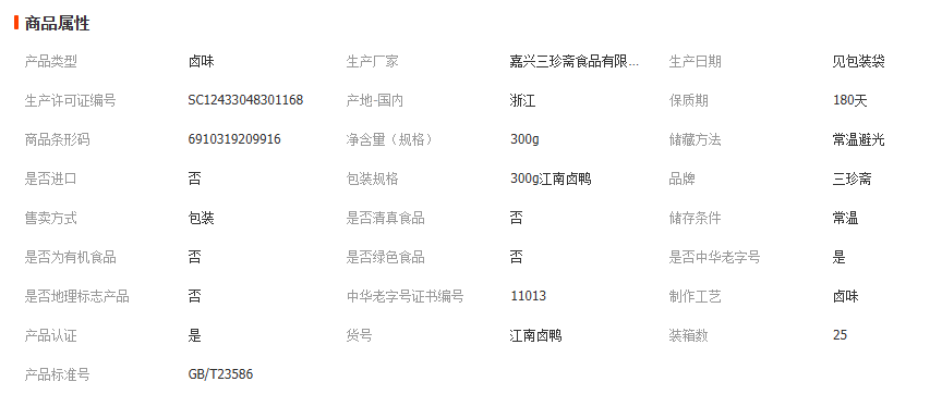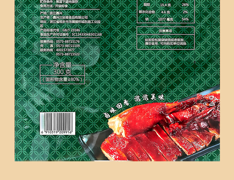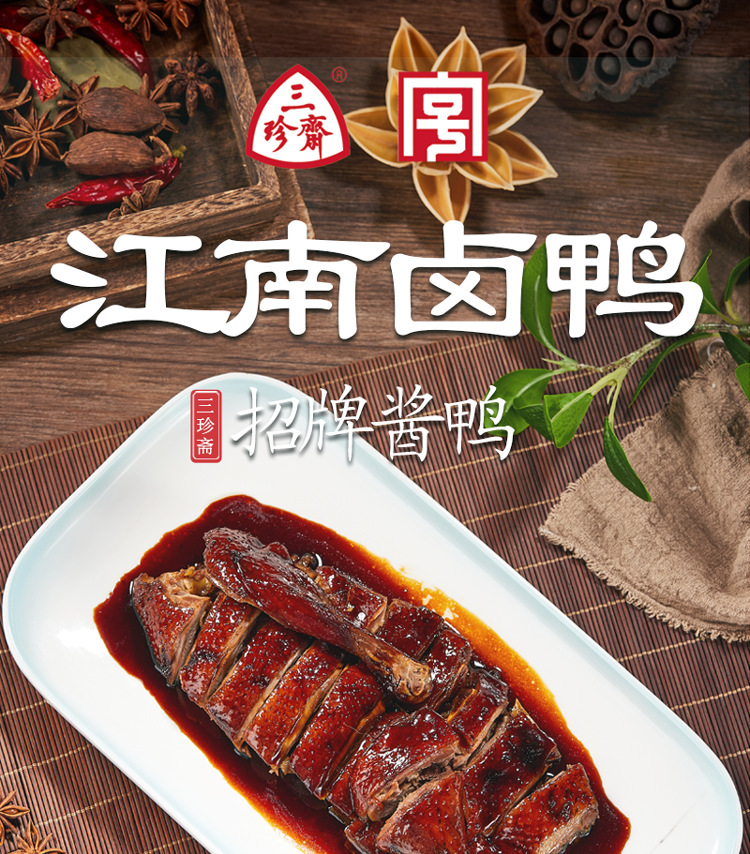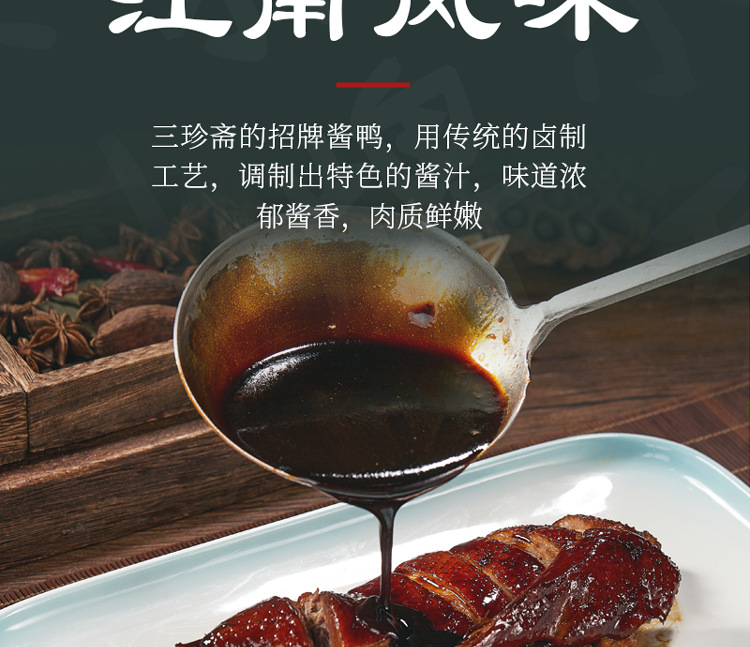本网页所展示的有关【三珍斋江南卤鸭300g熟食卤味真空即食预制菜中华老字号酱卤制品_速食方便食品_嘉兴三珍斋食品有限公司】的信息/图片/参数等由赛皇云的会员【嘉兴三珍斋食品有限公司】提供,由赛皇云会员【嘉兴三珍斋食品有限公司】自行对信息/图片/参数等的真实性、准确性和合法性负责,本平台(本网站)仅提供展示服务,请谨慎交易,因交易而产生的法律关系及法律纠纷由您自行协商解决,本平台(本网站)对此不承担任何责任。您在本网页可以浏览【三珍斋江南卤鸭300g熟食卤味真空即食预制菜中华老字号酱卤制品_速食方便食品_嘉兴三珍斋食品有限公司】有关的信息/图片/价格等及提供【三珍斋江南卤鸭300g熟食卤味真空即食预制菜中华老字号酱卤制品_速食方便食品_嘉兴三珍斋食品有限公司】的商家公司简介、联系方式等信息。