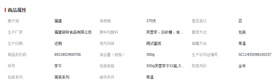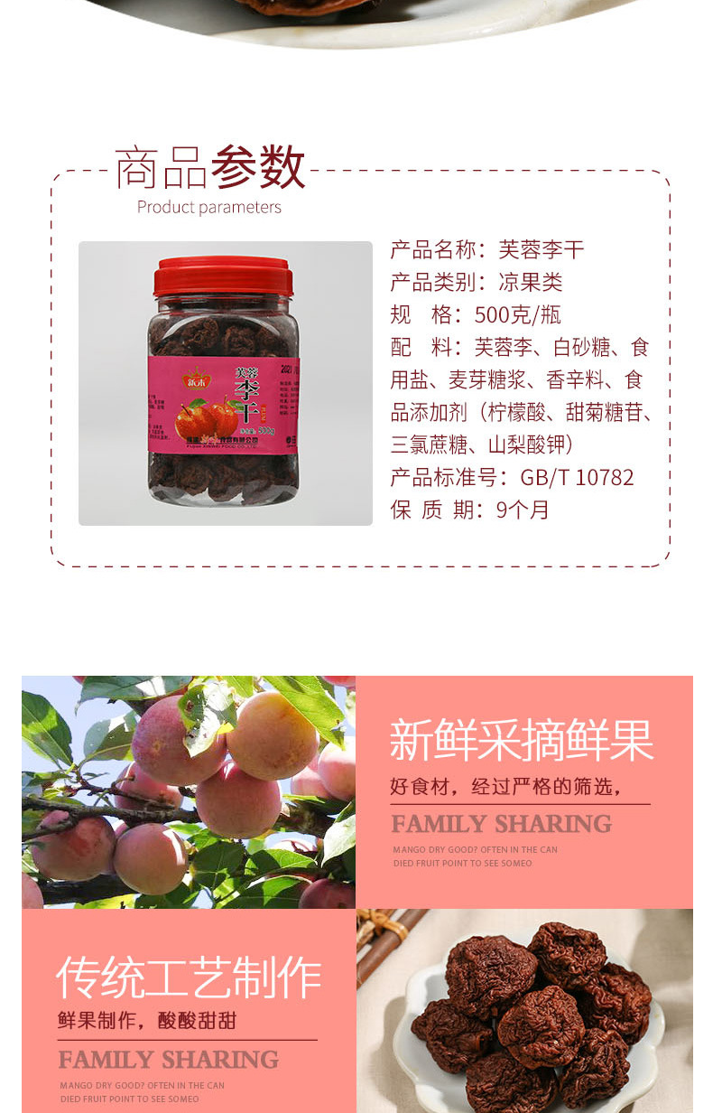本网页所展示的有关【新味芙蓉李干奈干原味李子干酸甜口蜜饯500g罐装福建特产潭头李干_休闲食品_福建新味食品有限公司】的信息/图片/参数等由赛皇云的会员【福建新味食品有限公司】提供,由赛皇云会员【福建新味食品有限公司】自行对信息/图片/参数等的真实性、准确性和合法性负责,本平台(本网站)仅提供展示服务,请谨慎交易,因交易而产生的法律关系及法律纠纷由您自行协商解决,本平台(本网站)对此不承担任何责任。您在本网页可以浏览【新味芙蓉李干奈干原味李子干酸甜口蜜饯500g罐装福建特产潭头李干_休闲食品_福建新味食品有限公司】有关的信息/图片/价格等及提供【新味芙蓉李干奈干原味李子干酸甜口蜜饯500g罐装福建特产潭头李干_休闲食品_福建新味食品有限公司】的商家公司简介、联系方式等信息。