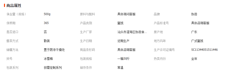 本网页所展示的有关【厂家直供冰雪梅 雪花梅 即食凉果蜜饯白话梅 酸甜果脯零食 老婆梅_休闲食品_汕头市澄海区协田食品有限公司】的信息/图片/参数等由赛皇云的会员【汕头市澄海区协田食品有限公司】提供,由赛皇云会员【汕头市澄海区协田食品有限公司】自行对信息/图片/参数等的真实性、准确性和合法性负责,本平台(本网站)仅提供展示服务,请谨慎交易,因交易而产生的法律关系及法律纠纷由您自行协商解决,本平台(本网站)对此不承担任何责任。您在本网页可以浏览【厂家直供冰雪梅 雪花梅 即食凉果蜜饯白话梅 酸甜果脯零食 老婆梅_休闲食品_汕头市澄海区协田食品有限公司】有关的信息/图片/价格等及提供【厂家直供冰雪梅 雪花梅 即食凉果蜜饯白话梅 酸甜果脯零食 老婆梅_休闲食品_汕头市澄海区协田食品有限公司】的商家公司简介、联系方式等信息。