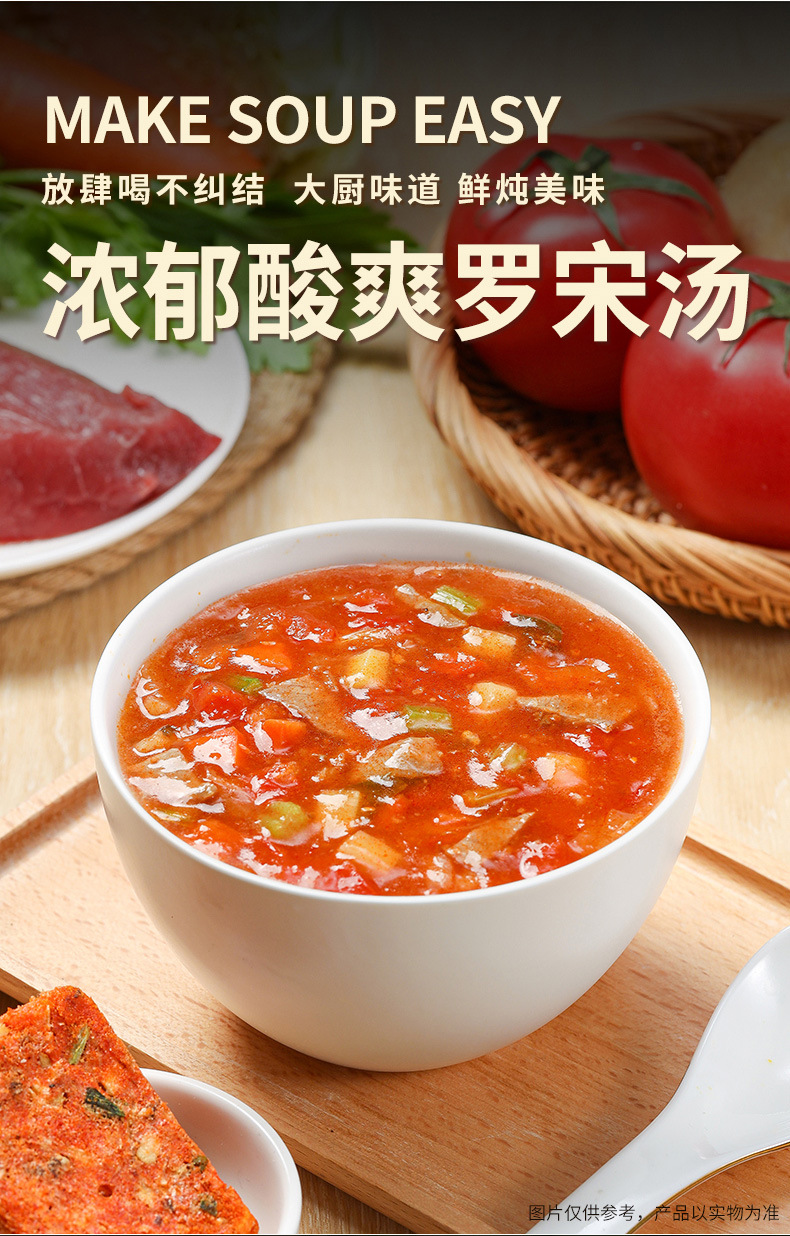 本网页所展示的有关【新美香冻干炖汤轻食代餐牛肉羹免煮方便冲泡即食夜宵罗宋汤速食汤_速食方便食品_湖北新美香食品有限公司】的信息/图片/参数等由赛皇云的会员【湖北新美香食品有限公司】提供,由赛皇云会员【湖北新美香食品有限公司】自行对信息/图片/参数等的真实性、准确性和合法性负责,本平台(本网站)仅提供展示服务,请谨慎交易,因交易而产生的法律关系及法律纠纷由您自行协商解决,本平台(本网站)对此不承担任何责任。您在本网页可以浏览【新美香冻干炖汤轻食代餐牛肉羹免煮方便冲泡即食夜宵罗宋汤速食汤_速食方便食品_湖北新美香食品有限公司】有关的信息/图片/价格等及提供【新美香冻干炖汤轻食代餐牛肉羹免煮方便冲泡即食夜宵罗宋汤速食汤_速食方便食品_湖北新美香食品有限公司】的商家公司简介、联系方式等信息。