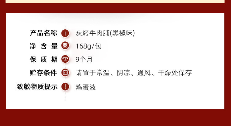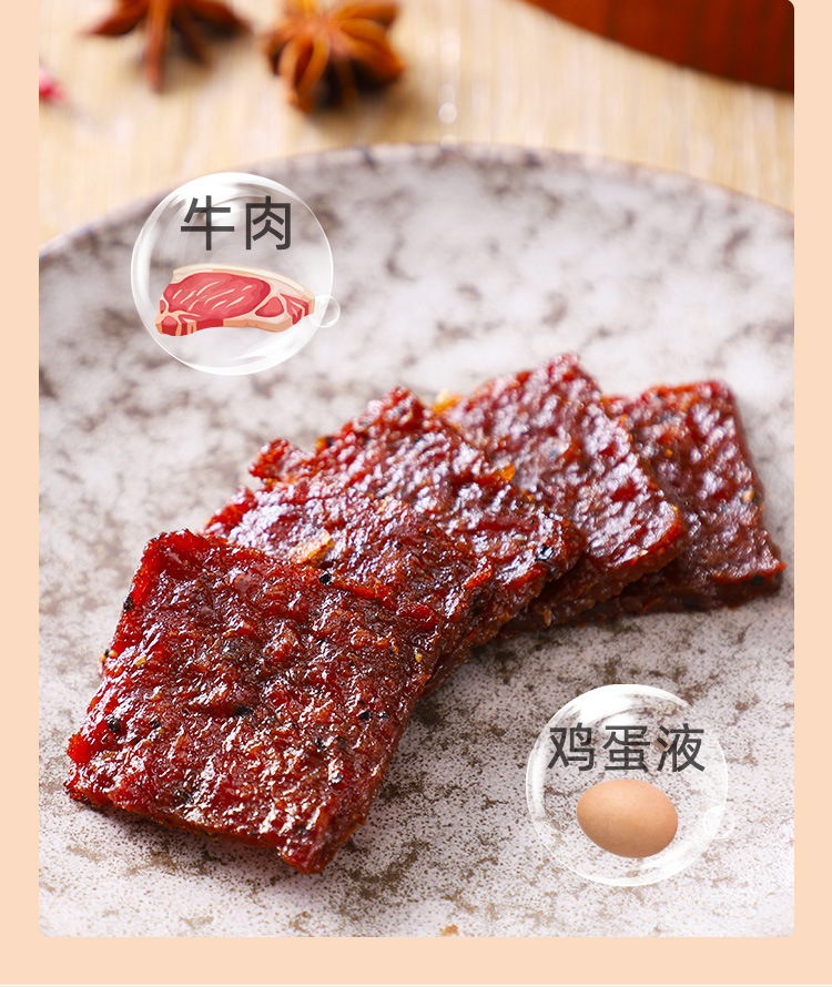 本网页所展示的有关【黑椒牛肉脯果木炭烤牛肉干熟食休闲小零食168g牛肉片潮汕特产定制_休闲食品_广东汇泰食品有限公司】的信息/图片/参数等由赛皇云的会员【广东汇泰食品有限公司】提供,由赛皇云会员【广东汇泰食品有限公司】自行对信息/图片/参数等的真实性、准确性和合法性负责,本平台(本网站)仅提供展示服务,请谨慎交易,因交易而产生的法律关系及法律纠纷由您自行协商解决,本平台(本网站)对此不承担任何责任。您在本网页可以浏览【黑椒牛肉脯果木炭烤牛肉干熟食休闲小零食168g牛肉片潮汕特产定制_休闲食品_广东汇泰食品有限公司】有关的信息/图片/价格等及提供【黑椒牛肉脯果木炭烤牛肉干熟食休闲小零食168g牛肉片潮汕特产定制_休闲食品_广东汇泰食品有限公司】的商家公司简介、联系方式等信息。