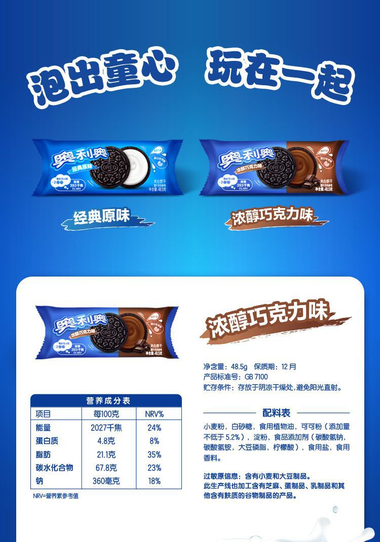 奥利奥袋装48.5g,箱规48袋。为了减少运输过程中的损耗,请按箱规倍数购买.