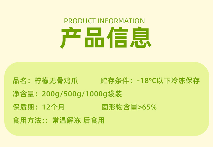 本网页所展示的有关【包邮袁方柠檬酸辣无骨鸡爪开袋即食凉菜小吃酒店餐饮脱骨凤 爪批发_休闲食品_温州袁方食品有限公司】的信息/图片/参数等由赛皇云的会员【温州袁方食品有限公司】提供,由赛皇云会员【温州袁方食品有限公司】自行对信息/图片/参数等的真实性、准确性和合法性负责,本平台(本网站)仅提供展示服务,请谨慎交易,因交易而产生的法律关系及法律纠纷由您自行协商解决,本平台(本网站)对此不承担任何责任。您在本网页可以浏览【包邮袁方柠檬酸辣无骨鸡爪开袋即食凉菜小吃酒店餐饮脱骨凤 爪批发_休闲食品_温州袁方食品有限公司】有关的信息/图片/价格等及提供【包邮袁方柠檬酸辣无骨鸡爪开袋即食凉菜小吃酒店餐饮脱骨凤 爪批发_休闲食品_温州袁方食品有限公司】的商家公司简介、联系方式等信息。