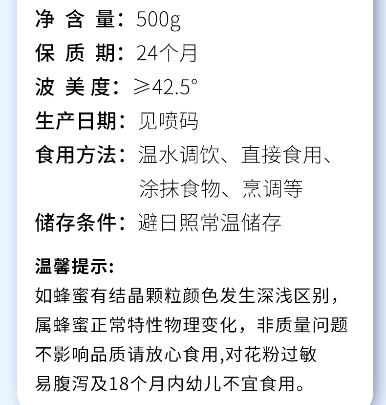 产品卖点:蜜浓度高,质量品质保证,检测报告齐全,价格优势大。