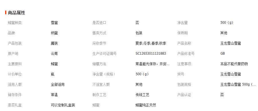 产品名称:玉龙雪山雪蜜(精品蜜)