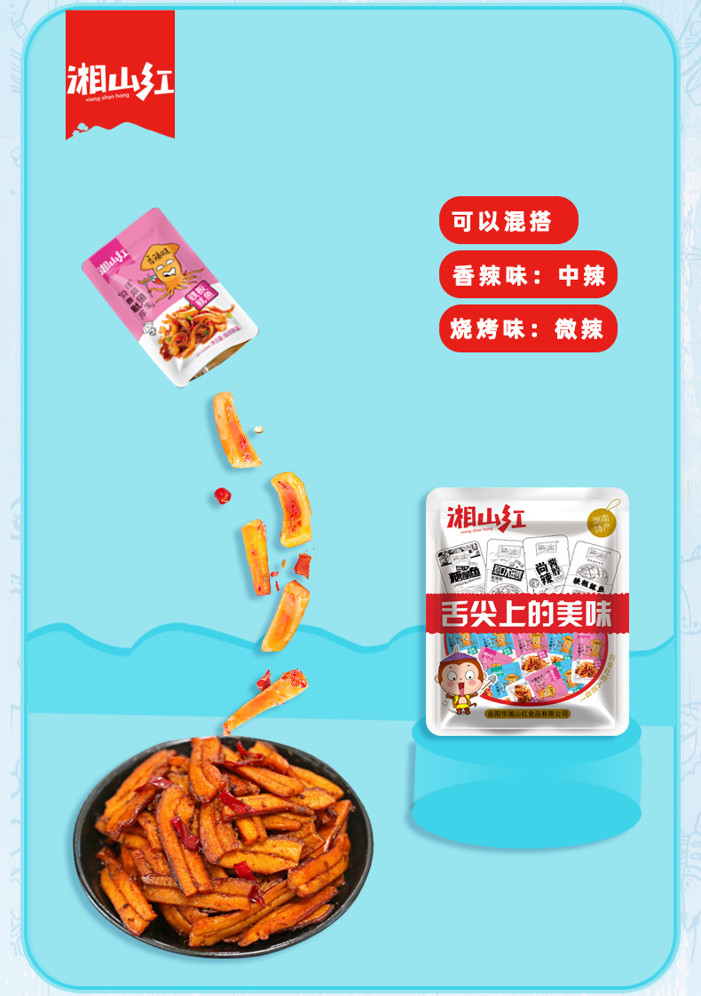 本网页所展示的有关【湘山红杏鲍菇鱿鱼丝烧烤香辣鱿鱼须即食海味休闲食品零食小吃批发_休闲食品_岳阳市湘山红食品有限公司】的信息/图片/参数等由赛皇云的会员【岳阳市湘山红食品有限公司】提供,由赛皇云会员【岳阳市湘山红食品有限公司】自行对信息/图片/参数等的真实性、准确性和合法性负责,本平台(本网站)仅提供展示服务,请谨慎交易,因交易而产生的法律关系及法律纠纷由您自行协商解决,本平台(本网站)对此不承担任何责任。您在本网页可以浏览【湘山红杏鲍菇鱿鱼丝烧烤香辣鱿鱼须即食海味休闲食品零食小吃批发_休闲食品_岳阳市湘山红食品有限公司】有关的信息/图片/价格等及提供【湘山红杏鲍菇鱿鱼丝烧烤香辣鱿鱼须即食海味休闲食品零食小吃批发_休闲食品_岳阳市湘山红食品有限公司】的商家公司简介、联系方式等信息。